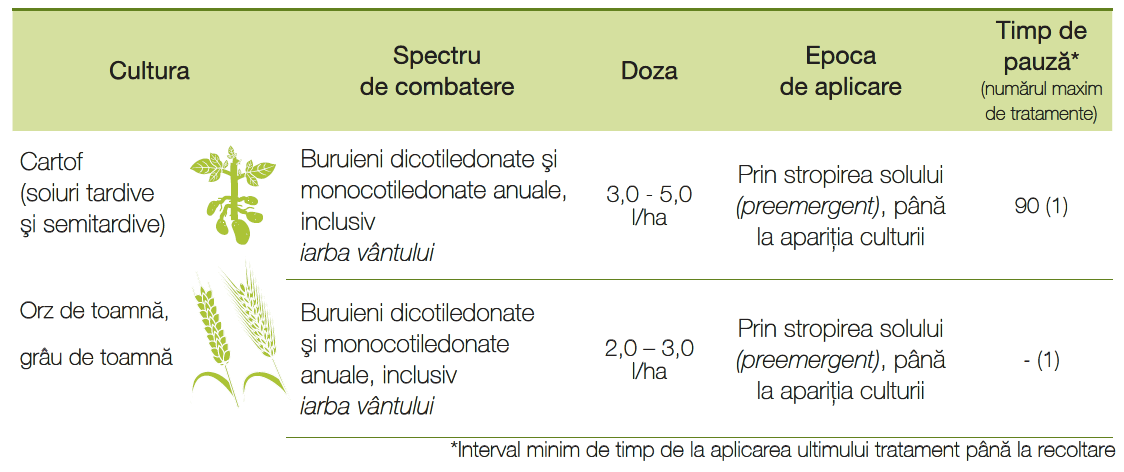 DEFI® este un erbicid polivalent aplicat la o doză de 3,0 - 5,0 l/ha la cartof, și 2,0 - 3,0 l/ha la cereale păioase (grâu şi orz) și combate un spectu larg de buruieni monocotiledonate și dicotiledonate anuale.