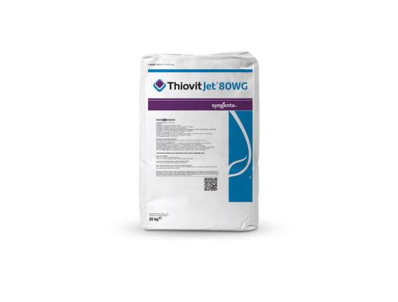 Thiovit Jet® 80 WG este un fungicid de contact cu acțiune multiplă în combaterea făinării la vița de vie, castraveți, măr și cu efect secundar împotriva acarienilor. Calitatea formulării, microgranule dispersabile în apă, asigură o mai bună omogenizare a soluției, pregătirea soluției într-un timp mai scurt, nu înfundă duzele și se produce mai puțin praf.