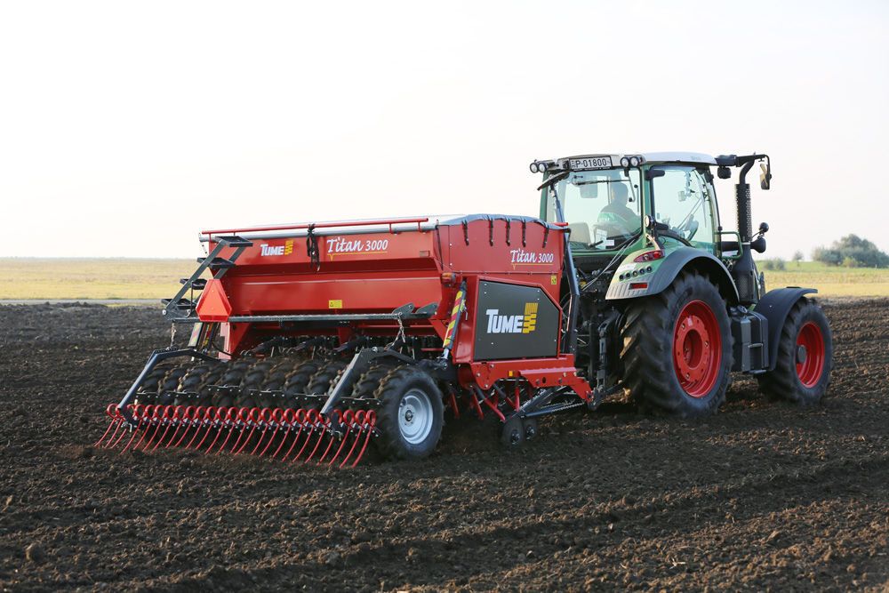 Înlocuirea secțiilor separate de îngrășăminte cu o structură cu două discuri reduce cantitatea de piese consumabile din Tume Titan. Când toate elementele mașinii sunt în mișcare, structura mașinii este complet protejată. Rezistența la tracțiune a mașinii este, de asemenea, printre cele mai mici din clasa sa. Acest lucru ajută la economisirea combustibilului și permite utilizarea unui tractor mai mic, de asemenea. Roțile de susținere acoperă o arie largă, rulând de-a lungul suprafeței la o presiune constantă. Greutatea maximă a brăzdarului este de 60 kg / brăzdar și poate fi ajustată în timpul funcționării, dacă este necesar.
