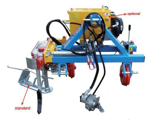 Держатель лапы с гидравлическим удлинением. Доступен в версии с передней или задней трехточечной навеской. 55-сантиметровая правая междурядная лапа с быстрым навесом на трактор и механическим аварийным возвратом. Бульдозерная шпора. Колеса справо и слево для регулировки глубины и контроля боковой устойчивости. Правое боковое гидравлическое расширение, с 2 быстро-разъемными соединениями к трактору