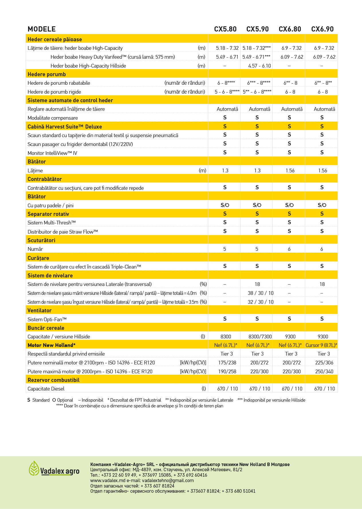 Для рынка Республики Молдова доступны три модели комбайнов 5 и 6 клавиш из модельной линейки CX. CX 5.90 мощностью 300 л.с. и бункером объемом 8 300 литров, CX 6.80 мощностью 300 л.с. и бункером объемом 9 300 литров, CX 6.90 мощностью 333 л.с. и бункером объемом 9 300 литров. Комбайны этой модельной линейки оснащаются системой Smart Sieve, которая равномерно распределяет массу по решетному стану в случае если комбайн движется по склону.