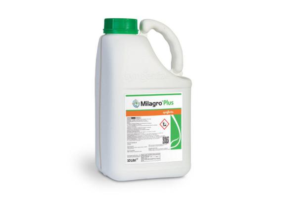 Milagro® Plus acționează împotriva celor mai dificile buruieni din cultura porumbului. Prin sinergia dintre cele două substanţe active, formularea OD (dispersie în ulei) și utilizarea în doza maximă de 1,2 L/ ha, produsul asigură eficiență dovedită în combaterea unui spectru larg de buruieni monocotiledonate şi dicotiledonate anuale şi perene.Nicosulfuronul controlează buruienile monocotiledonate anuale și perene. La scurt timp după tratament, nicosulfuronul este absorbit de frunze şi translocat în xilem şi floem către ţesuturile meristematice, cauzând inhibarea creşterii, decolorarea, necrozarea şi, în final, moartea plantelor ţintă. Inhibă activitatea enzimei ALS (acetolactat sinterază), rezultând întreruperea diviziunii celulare.Dicamba controluează buruienile dicotiledonate anuale şi perene, nclusiv buruienile problemă precum Convolvulus arvensis şi Cirsium arvense. Are acţiunea auxinică, legându-se de receptorii proteinelor de creştere a buruienilor şi blocând creşterea acestora. Principalele efecte ale dicamba sunt: defolierea, distrugerea ţesuturilor de creştere, necroza sistemului radicular conducând la moartea buruienilor sensibile.